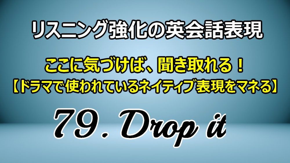 「Drop it」は、「その話をやめる」や「その問題を放置する」という意味で使われます。この表現は、特定の話題についてこれ以上話さないように求める際に使用されます。